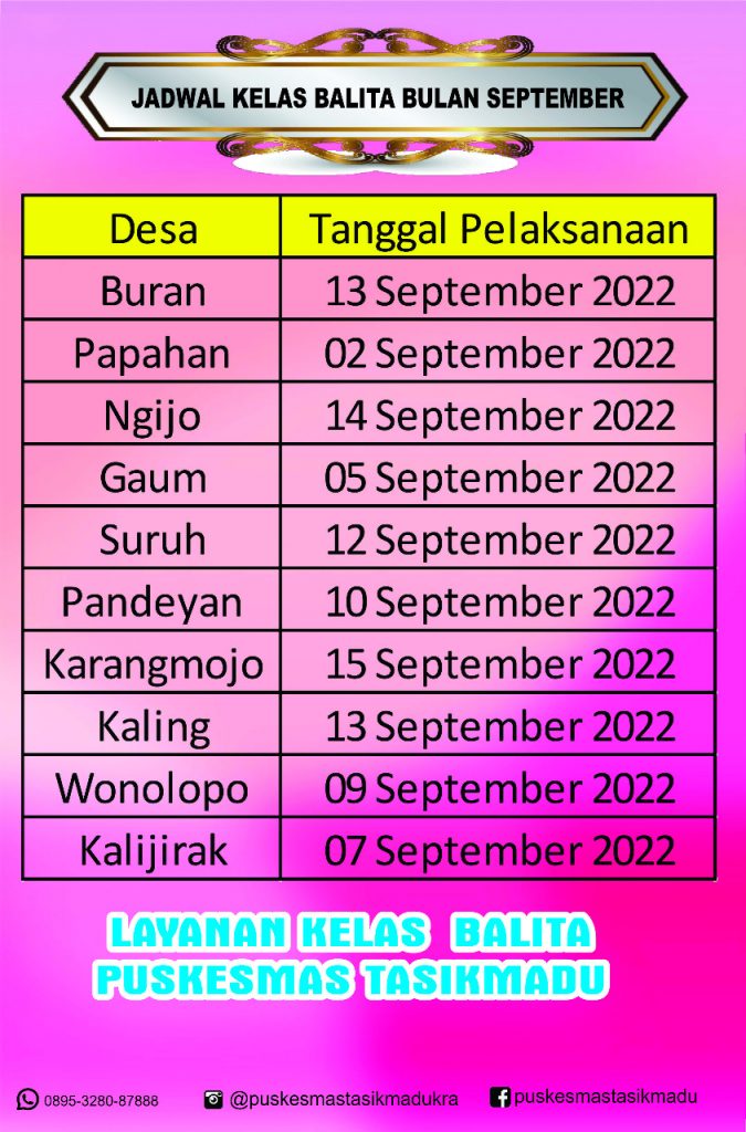 JADWAL KELAS IBU BALITA BULAN SEPTEMBER 2022