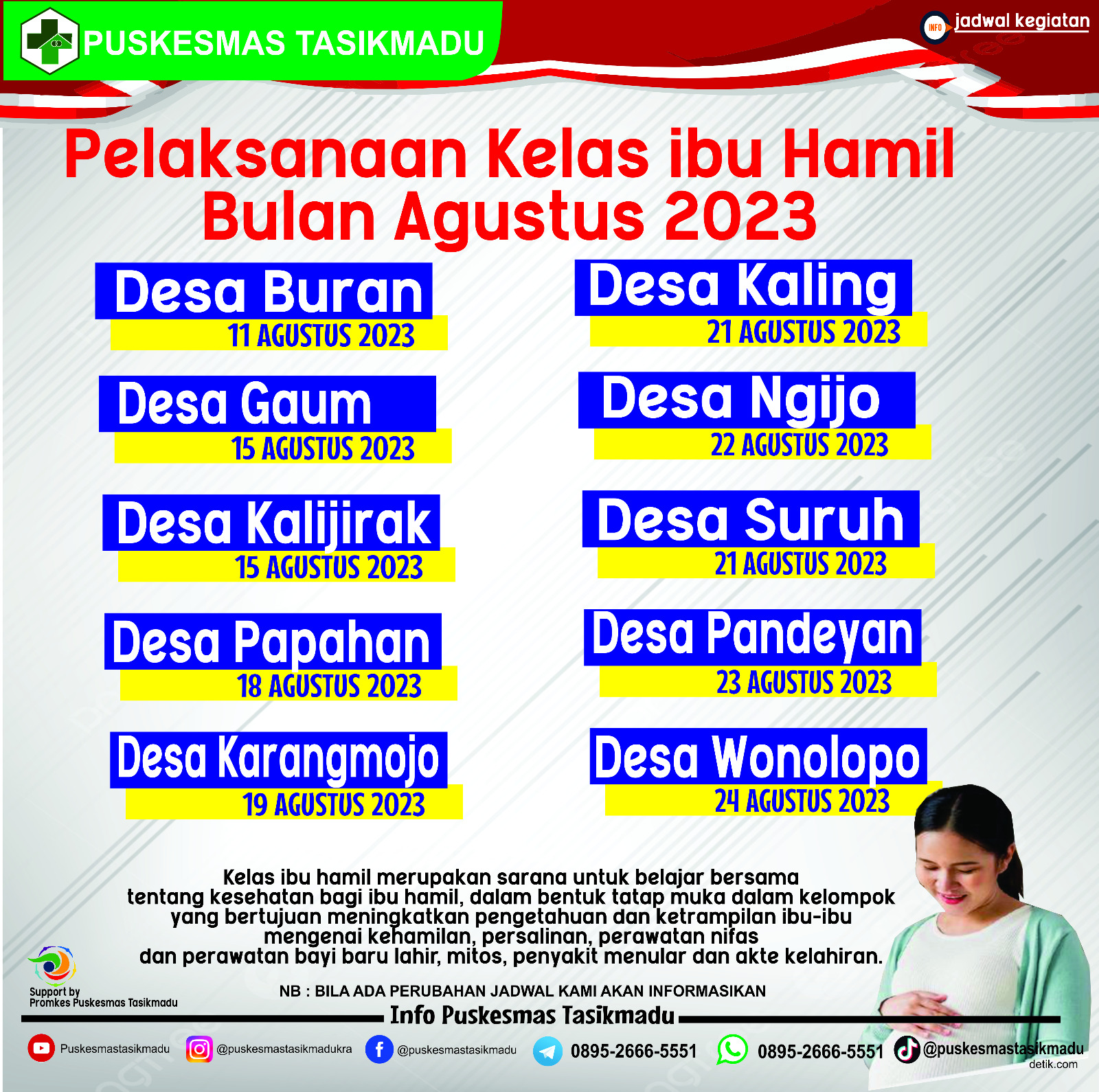 JADWAL KELAS IBU HAMIL AGUSTUS