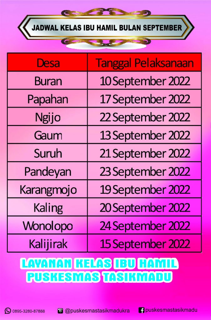 JADWAL KELAS IBU HAMIL BULAN SEPTEMBER 2022