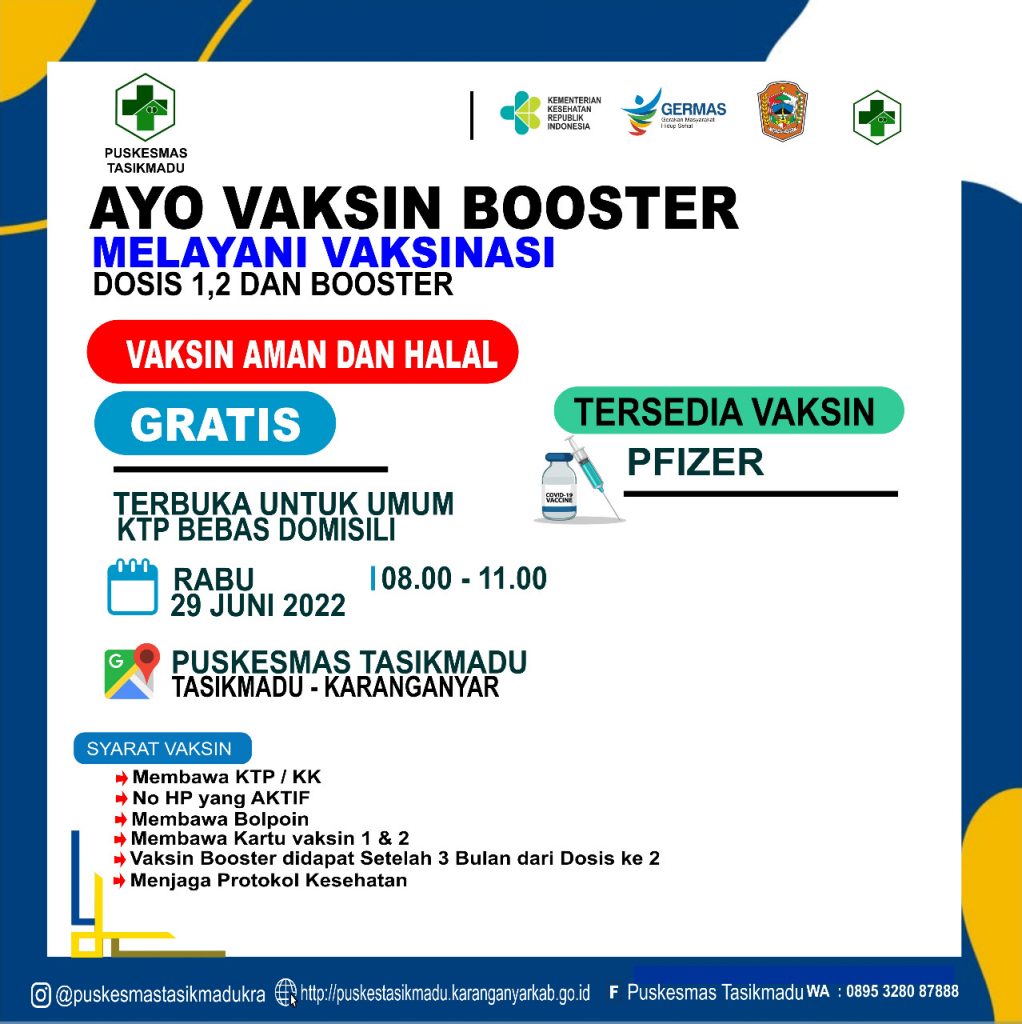 JADWAL VAKSINASI BOOSTER 29 JUNI 2022