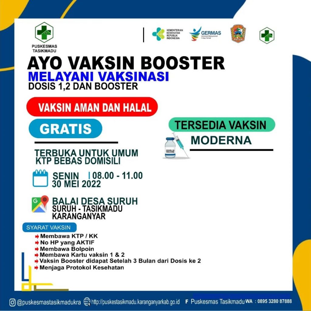 JADWAL VAKSINASI BOOSTER 30 MEI 2022